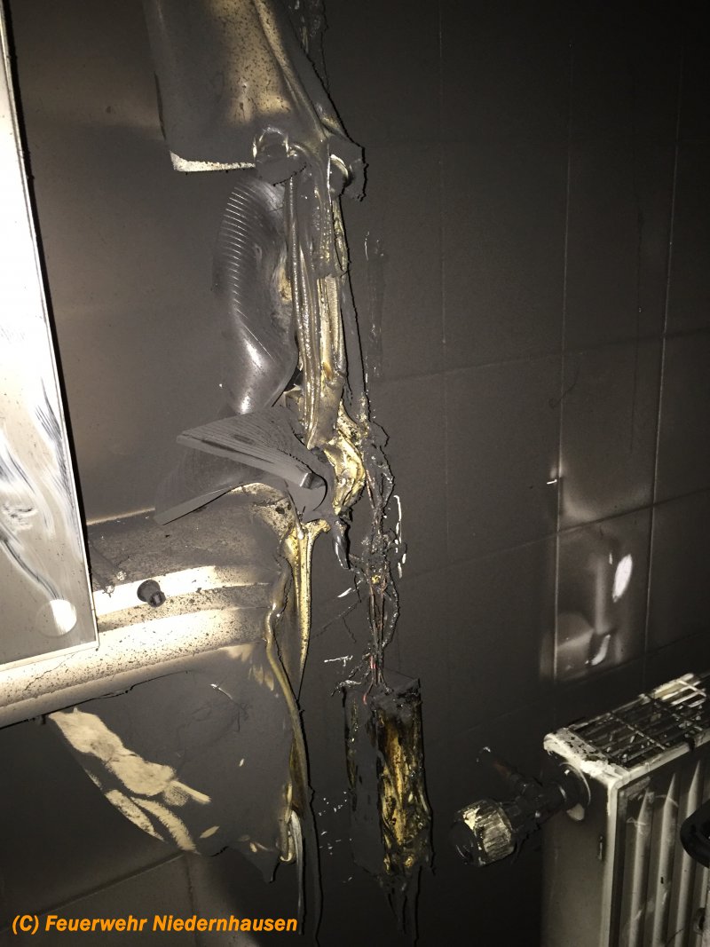 In einer Kellerwohnung brannte ein Spiegelschrank der von einem Trupp unter schwerem Atemschutz und einem C-Rohr gelöscht wurde. Anschließend wurde das Gebäude mit dem Hochdrucklüfter belüftet.