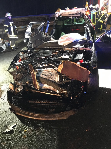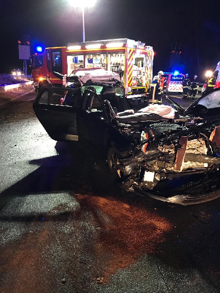Die Kameraden aus Niedernhausen und Königshofen befreiten mittels hydraulischem Rettungsgerät, sowie Rettungszylinder die eingeklemmte Person aus dem verunfallten Wagen. Die Einsatzstelle wurde an die Feuerwehren aus Wiesbaden übergeben.